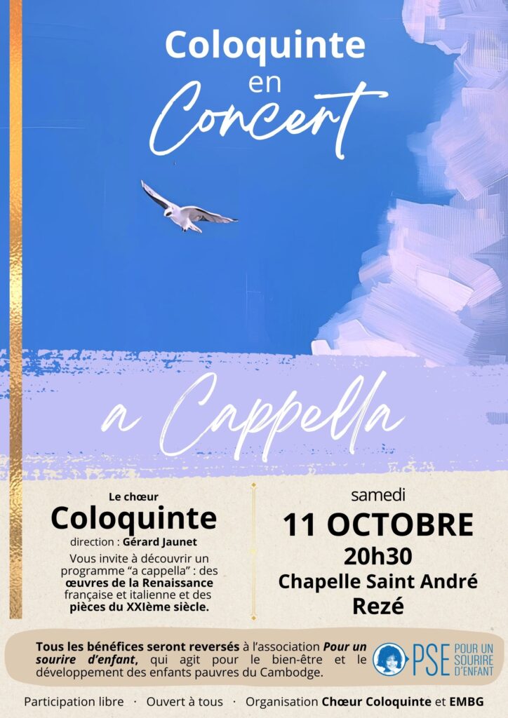 Ce concert est donné au profit de l’association PSE (Pour un Sourire d’Enfant) qui agit pour le bien être et l’éducation des enfants pauvres du Cambodge.